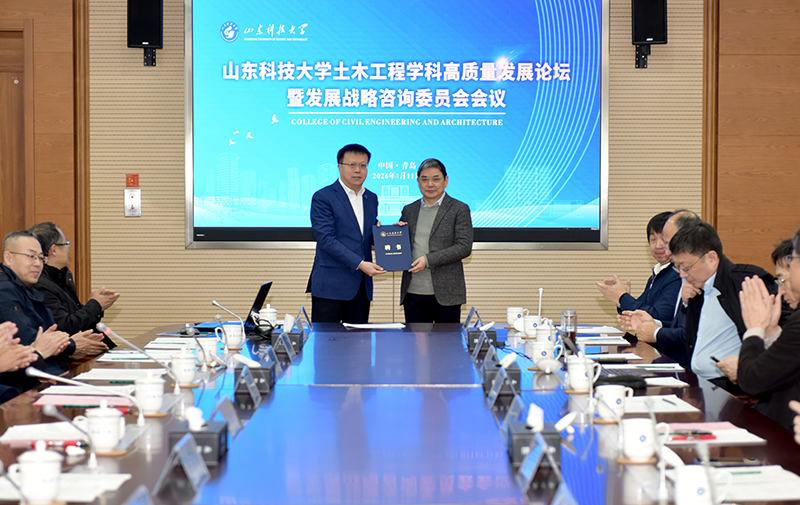 1月11日,山东科技大学举办土木工程学科高质量发展论坛暨发展战略咨询委员会会议,校党委书记王君松出席会议并致辞,中国工程院院士、山东大学校长李术才线上致辞。会上,王君松为发展战略咨询委员会主任委员、中国工程院院士、武汉大学刘泉声教授,副主任委员、日本工程院外籍院士、北京工业大学赵衍刚教授,以及浙江大学建筑工程学院院长罗尧治教授、重庆大学土木工程学院院长杨庆山教授分别颁发聘书。刘泉声院士、山东科技大学副校长薛庆忠分阶段主持会议。