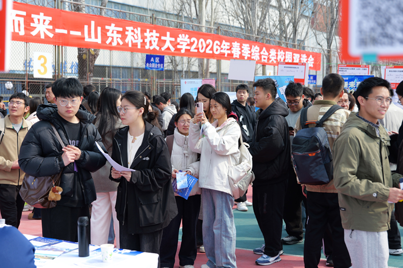3月20日,农历二月二,民间俗称龙抬头,恰逢春分节气,艳阳高照,山东科技大学在青岛校区举办“‘就’选山东‘位’你而来”2026年春季综合类校园双选会,包括130家央国企在内的全国1000余家用人单位来校招贤纳士,共提供2.8万个就业岗位,吸引我校及兄弟高校近万名毕业生前来求职,现场达成初步意向2200余人。