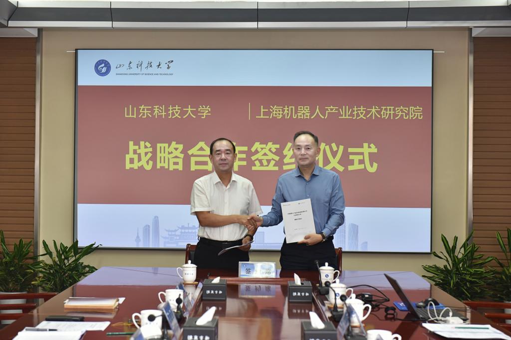 9月5日,山东科技大学与上海机器人产业技术研究院有限公司战略合作签约仪式在校举行。山东科技大学校长曾庆田,上海机器人产业技术研究院有限公司董事长郑军奇出席仪式并代表双方签署战略合作协议。