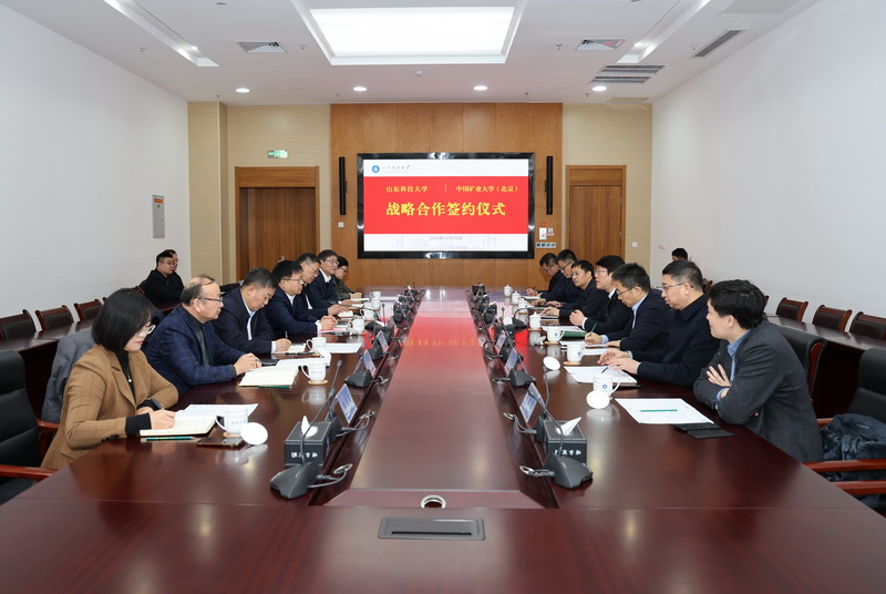 12月25日,山东科技大学与中国矿业大学(北京)战略合作签约仪式在我校举行。山东科技大学党委书记王君松、中国矿业大学(北京)党委书记韩尚峰出席仪式并致辞,山东科技大学副校长诸葛福民、中国矿业大学(北京)副校长汪文生代表双方签署战略合作协议。校友、中国科学院院士代世峰,山东科技大学副校长阳凡林出席仪式。