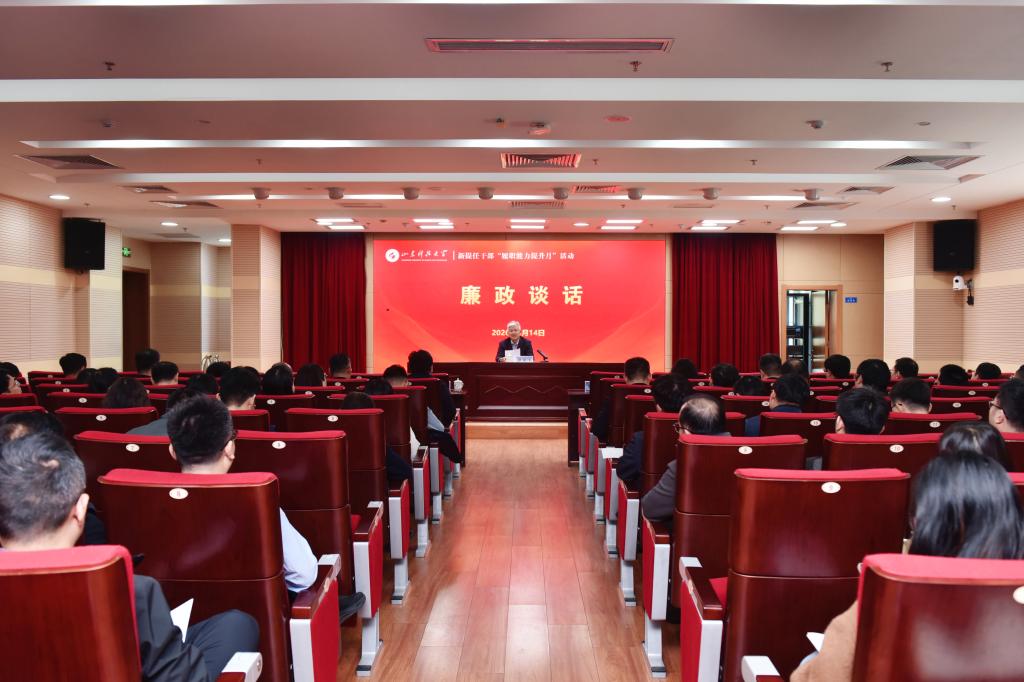启动仪式后,校党委常委、纪委书记徐龙飞与新提任干部进行了廉政谈话。他指出,新提任干部要铸牢政治忠诚,坚持强化理论武装,站稳政治立场,狠抓工作落实,形成“一级带着一级干,一级做给一级看”的良好局面。要严守纪律规矩,自觉接受监督,审慎行使权力,严守小事小节,管好身边之人,坚决筑牢拒腐防变的思想防线。要锤炼实干本领,切实提升履职效能,敢于攻坚克难,带头团结干事,为学校事业高质量发展贡献更大力量。