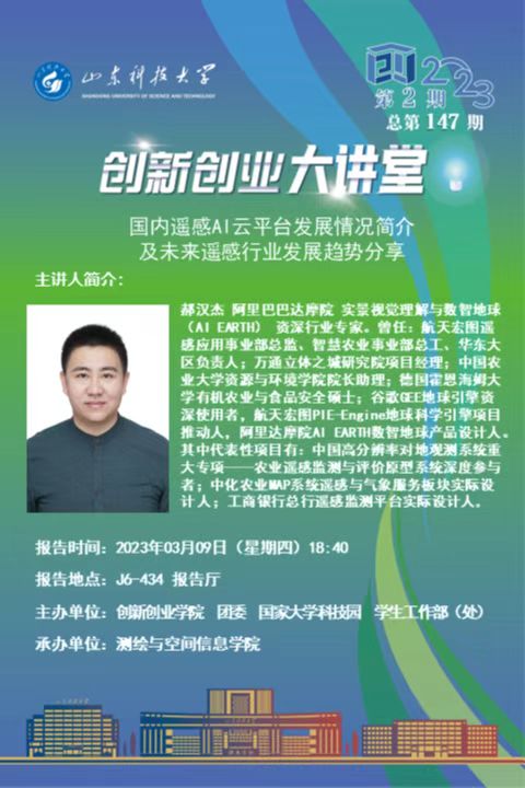 创新创业大讲堂2023年第2期:国内遥感AI云平台发展情况简介及未来遥感行业发展趋势分享